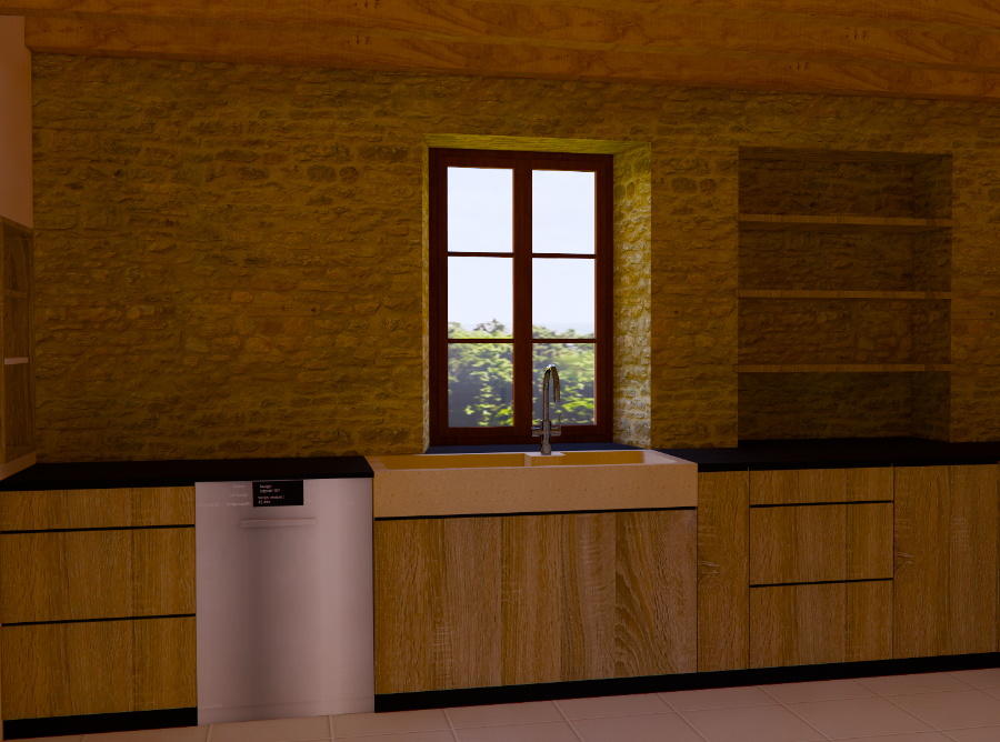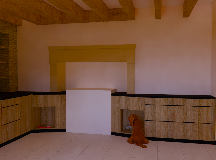 Pour la cuisine rien de difficile, il y avait cependant un cahier des charges très précis des clients notamment la création d’espaces distincts pour les repas des animaux de compagnie : un coin dédié au chien et un autre au chat.